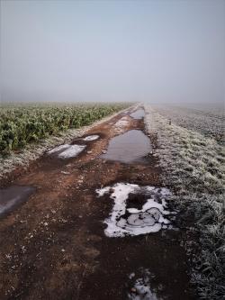 Morgennebel mit Rauhreif und Eis. |