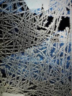Eisblumen auf Fensterglas. |